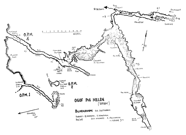 is site. By far, the most extensive of the caves is OPM 4 (see survey). There were a few false starts here, as this was