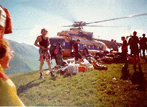 The outward journey went without a hitch, from the point of being met in Moscow to boarding the train which would take us to Adler on the Black Sea. We were joining a party from Moscow University who organised the Russian side of the trip and who would help us through the minefield called Russian bureaucracy. To enable us to get cheap travel Yuri, the main expedition leader, booked us all on as Russians and so loading on of the luggage at Moscow station was silent on our part not trying to give the game away. Forty hours later we arrived in Adler, a run down holiday resort from the times when the Russian leadership was a little less worried about where it spent the people's money. Here we were to travel to our camp by helicopter from a nearby airfield again posing as Russians.