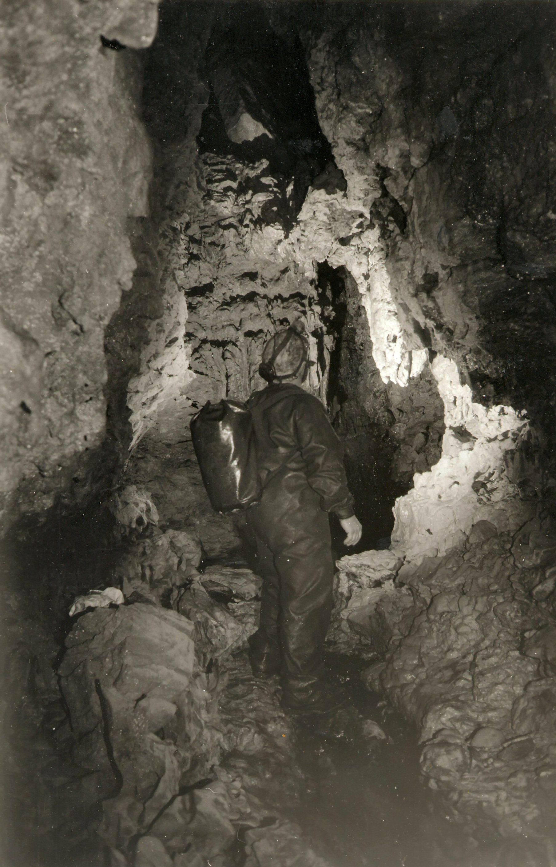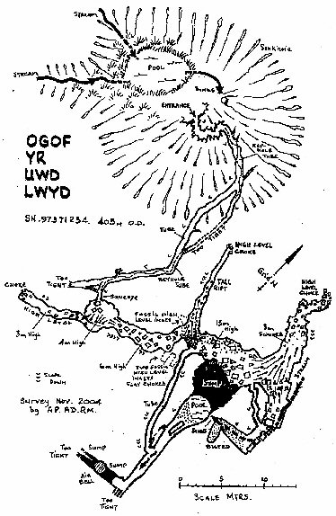 Descent said that the cave was discovered by Westminster Speleological Society though I have also heard that it was discovered be some cavers from Cardiff University. This group were reportedly involved in an attempt to dissolve away the rock of the sump pool, sulphuric acid was accidentally spilled onto a nylon rag, releasing noxious fumes. An extremely quick exit must have been made!