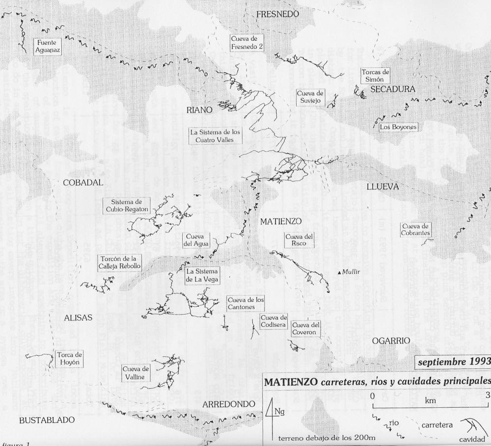This summer more than sixty cavers participated in the 23rd British Speleological "Expedition" to the Matienzo area in Northern Spain. The limestone depression containing the village of Matienzo is located 25km south-east of Santander in the foothills of the Cantabrian mountains halfway between the Pyrenees and the Picos de Europa. The area of the depression is 26km2 and comprises of a number of valleys completely enclosed by hills of mainly Cretaceous limestone. The highest point on the ridge is at an altitude of over 800m (Mullir) with the valley bottom being at around 150m.