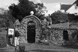 The Bone Cave is situated below the house and entered via a rustic stone gateway which is Grade II listed along with most of the other structures in the grounds. A steep stone stair descends to the main chamber curiously passing under a Whalebone archway. This small chamber and another smaller one adjacent, is all that is easily accessible but atmospheric lighting is provided solely by candles. Looking around one is immediately struck by the thousands of bones arranged in fascinating geometric stacks around the walls of the cave.