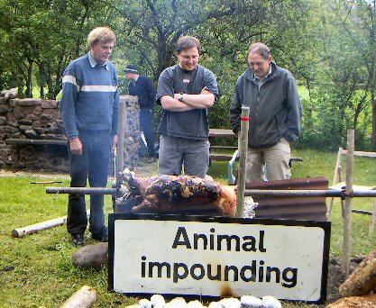 Croydon Caving Club was beginning celebrations for the 20th anniversary of Godre Pentre, the club's cottage. All was going well, with a lamb roasting over an open fire and copious amounts of food and alchohol ready for the party. Then a note arrived around 5pm from South Wales Caving Club that there was a rescue in progress in OFD and that Croydon Caving Club would be needed. 3 CCC members were already underground helping with the rescue as they were at SWCC when the incident was reported.