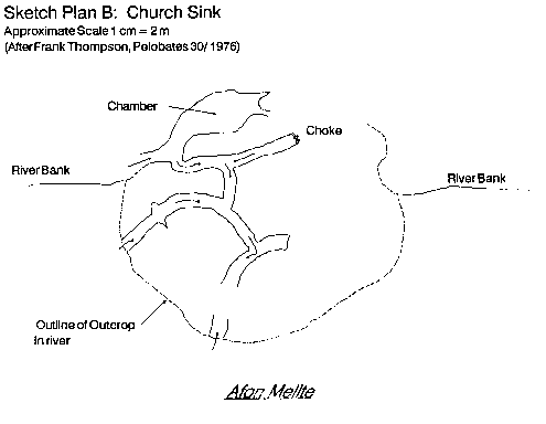 Unearthing an article in Pelobates 30 detailing the explorations of Church Sink by Frank Thompson, I immediately noted the similarity in the position and orientation of the chamber discovered in 1976 and that entered last Summer - see sketch plan B. Obviously further exploration will determine whether this is one and the same chamber. However, in the meantime maybe the original explorers might be able to help?