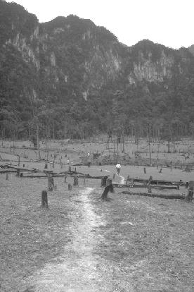 The next object was two fold, we would split up again and move into deep country near Hang En. Hang Khe Rhy had ended with a huge entrance after 5k and it was thought to be near Hang En, in fact GPS showed it to be less than a kilometre. Our team's objective; go to Hang En, camp there, finish off the survey and come home. To get there via Khe Rhy would be a 3day trip. We reckoned a day max from the main road via Hang En. We set off by truck and got as close as we could and got to walking. It was now hot again and our guides said it would take two days. At the first encampment they set down and started drinking rice wine with their mates - this is why it would take two days - we would visit every hooch house on the way. A bit of chivvying and a more appropriate pace was found.