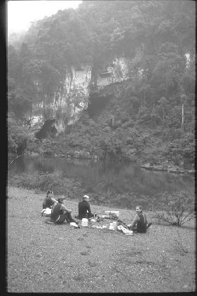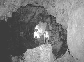 With the camp set up and all of us fed - the next day was a day for caving. Martin, Anette, Howard and Deb and myself went down stream to arch cave, a massive beautiful cave with a large swim lit by a daylight shaft. We swam out through the clear blue lake and found ourselves in a completely enclosed valley - jungle and mist covered the sheer walls of the doline. On to Hang Vom. At Hang Vom Anette was to stay on the surface and take biological samples while the rest of us pushed underground looking for two things, the source of the huge river in Hang Vom which wasn't in the river bed on the way there and to look at the right hand wall, which nobody had ever looked at!