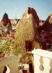 In some areas the hillsides have been sculpted into what closely resembles a huge pink and white meringue, while in other areas hundreds of 'fairy chimneys' have been created. These chimneys are cones of tuff that were baked by the sun and vary in shape from a sort of pixie hat to something rather more phallic. The latter is especially effective owing to the fact that a darker basalt cap tops many chimneys (let us avoid other headwear analogies). Never ones to miss out on an opportunity, the early settlers in this region discovered that the softness of the tuff enabled them to hollow out rooms and stairways in the chimneys. Almost all of them have now been converted into desirable 3 storey residences, with a few well-decorated churches for good measure.