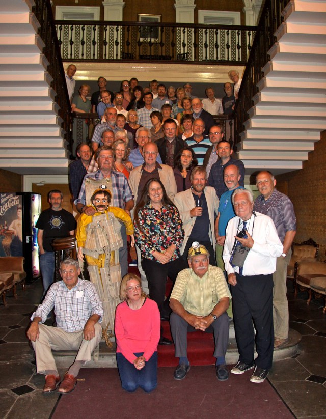After a buffet meal our diminutive wooden caving friend ‘Malcolm’ gave an after dinner talk with some cheeky comment on the assembled guests before our special guest, Dick Brice entertained us with some amusing stories and songs from the Forest of Dean. Martin Hatton lead a toast to the Club but the planned for grand birthday cake cutting ceremony didn't take place because everyone ate it before we got round to it! Events continued into the early hours with lots of talking, copious quantities of alcohol and an enthusiastically contested squeeze-box competition. The weekend was rounded off on Sunday when many of us took a walk up onto Hay Bluff before returning for tea at Baskerville Hall.