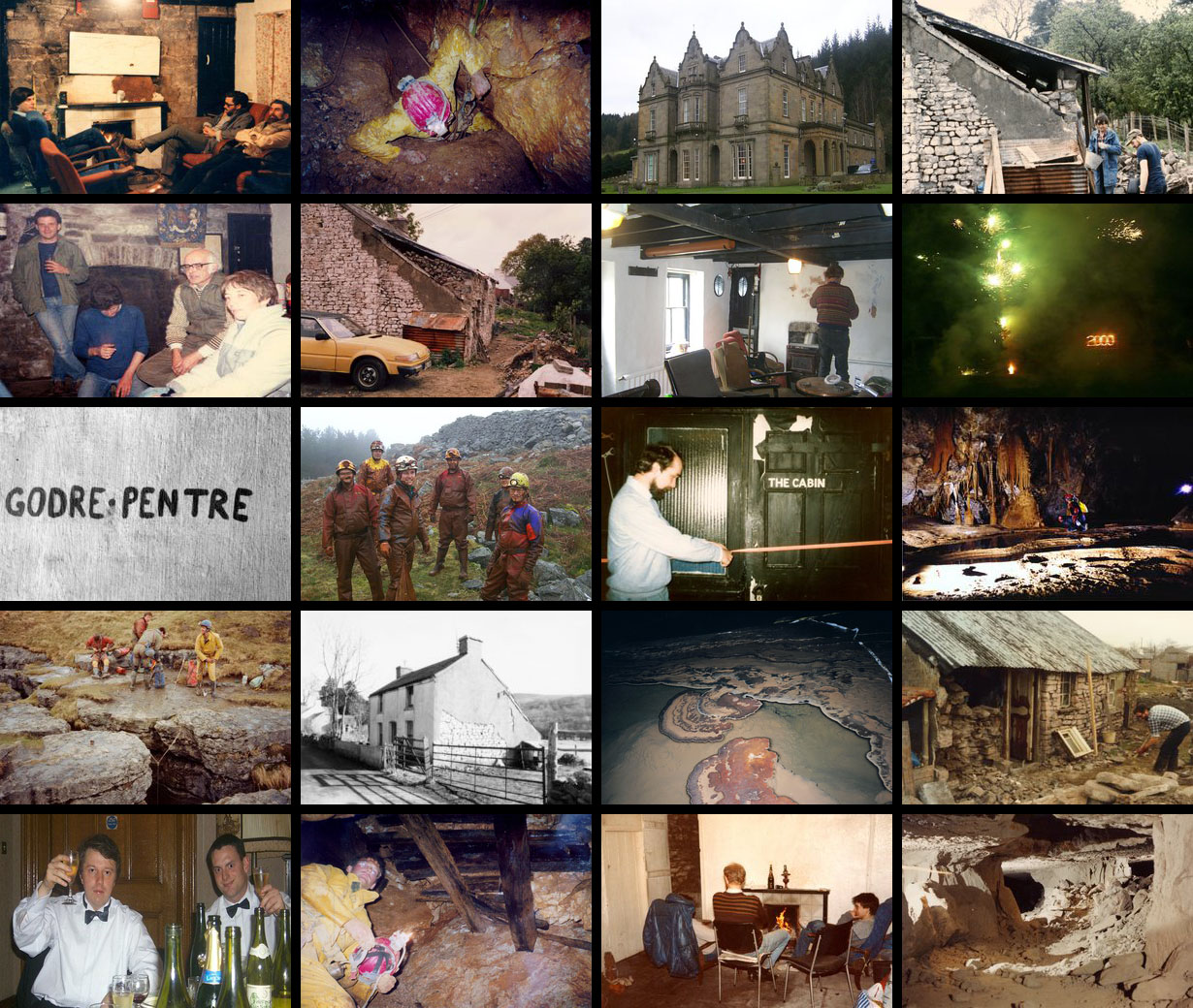 The main celebration was held in the Music Room at Baskerville Hall on Saturday night starting with a rare showing of the 1970 club film “Going Down in the World”. It was shot in and around Ystradfellte with underground sequences in Bridge Cave and we were all able to marvel at the youth of the participants and the fetching caving fashions of the day. It was filmed in ‘super8’ with underground lighting provided by running a power cable to flood lights in the cave from a generator on the surface. Even though the sound and image quality was poor by today’s standards, the film was a great achievement in its day. There was also a scrolling display of photos of people and events from the past projected on the wall throughout the evening.